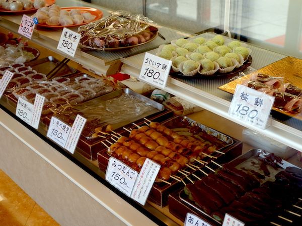 写真上)人気の品は昼過ぎまでに売り切れる 下)この時期だけ団子は“4兄弟”