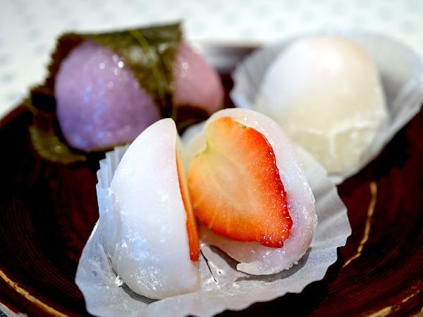 写真上)うぐいす餅 下)「いちご餅」は甘味と酸味のバランスがいい