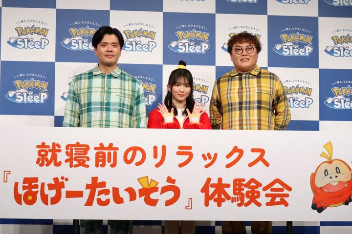 発表と合わせて都内で行われた「Pokémon Sleep就寝前のリラックス『ほげーたいそう』体験会」には櫻坂46の森田ひかるさんと、マユリカの阪本さん・中谷さんが登場。「ほげーたいそう」の実演や日常の中で最もリラックスしている「ほげー」となる瞬間について紹介しました。