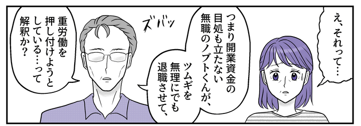 ノブトくんがプロデュースするお店で、ツムギが接客? 面倒な実務は全部ツムギに押し付けて、自分は好きなことだけやりたいとしか聞こえません。しかも社会人として立派に働いているツムギに仕事を辞めさせようとしているとは……!