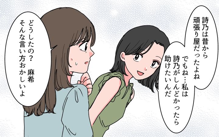 仕事もできて妻に甘いスパダリと結婚した友人。しかし結婚してしばらく経つと友人は夫の言うことしか聞かなくなり、退職し激やせしていた。夫の裏の顔を知った麻希は、同じ状況に陥った紗那から話を聞くことに成功。彼女は同じように妻を支配する夫と一緒になった経験から、友だちが今の環境から抜け出すには、自分で今の状況の異常性に気付く必要があると警告する。