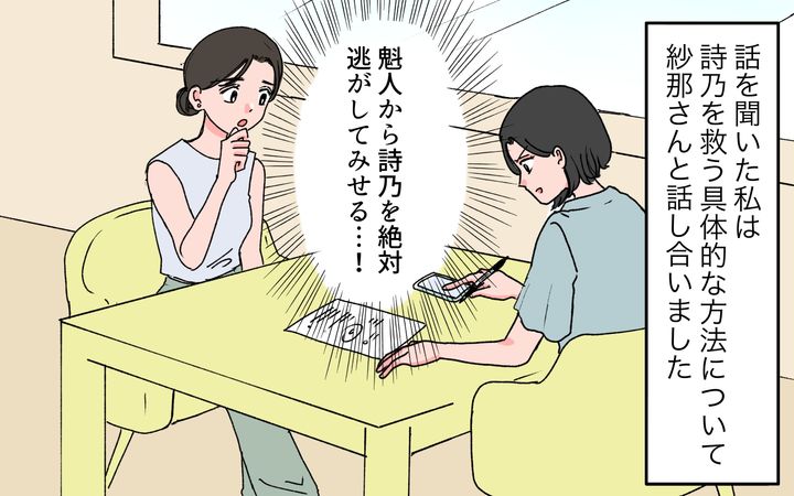 平日に会社が休みな時や有休を使いながら、詩乃のマンションそばのカフェで待っていると、ようやく詩乃に出会うことが…! なんとか少しだけ話す時間をもらうことができましたが、詩乃はやはりやつれたままでした。いきなり魁人とのことを聞いても不信感を抱かれてしまうと思い、あたりさわりない会話をしながら探ろうとしたのですが…。