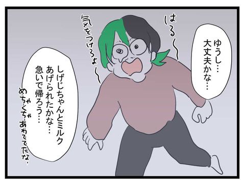 しげじに息子のゆうしを託し、病院に運ばれていったはる。ちゃんとゆうしにミルクをあげると言ったしげじですが…。
