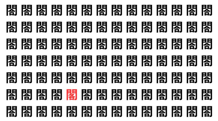 たくさんの「閤」の中に、よく似た別の漢字が1文字だけ隠れています。