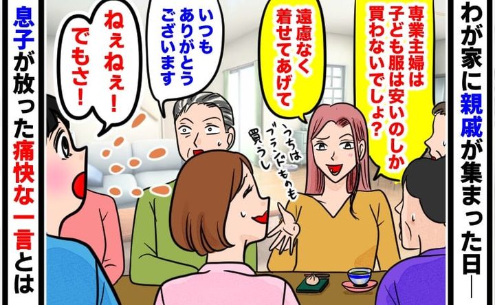 「専業主婦は安い服しか買わないでしょ?」おさがりを押し付けマウントをとる義姉。すると親戚の前で息子が痛快な一言を!?
