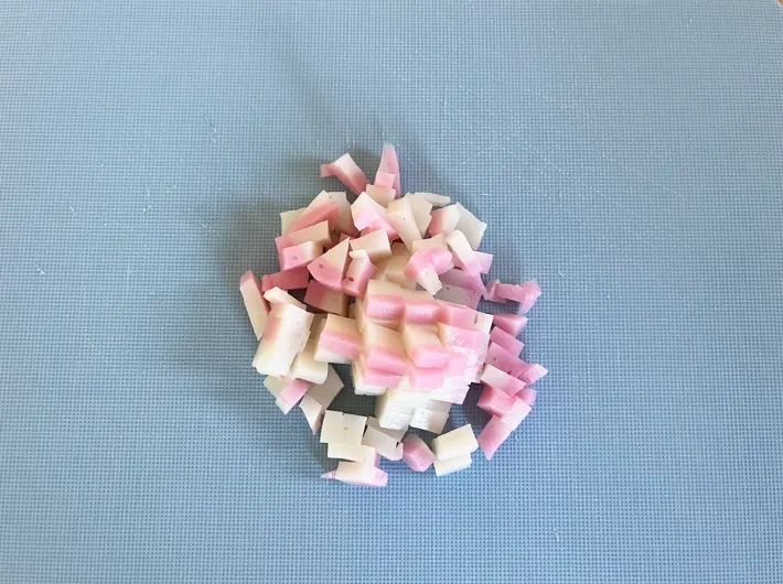 まずは、カマボコを細かくカットします。