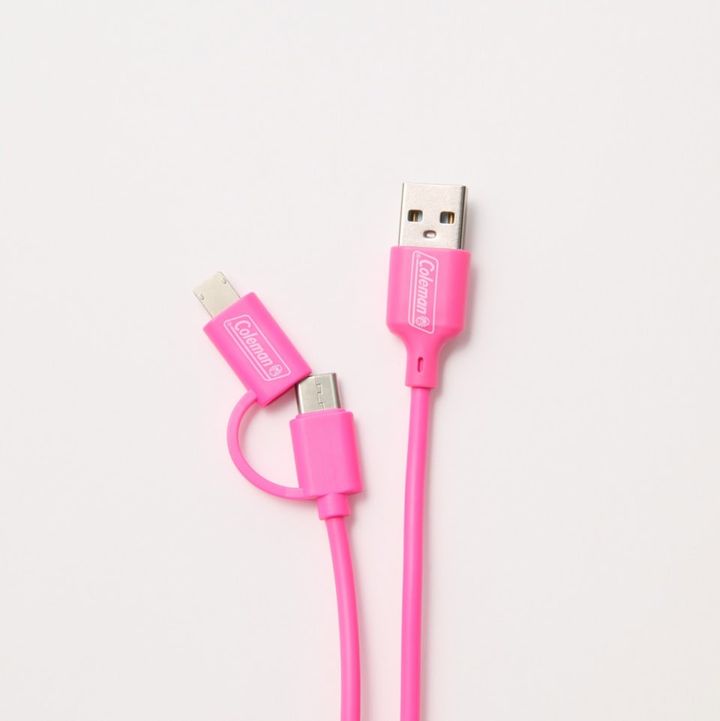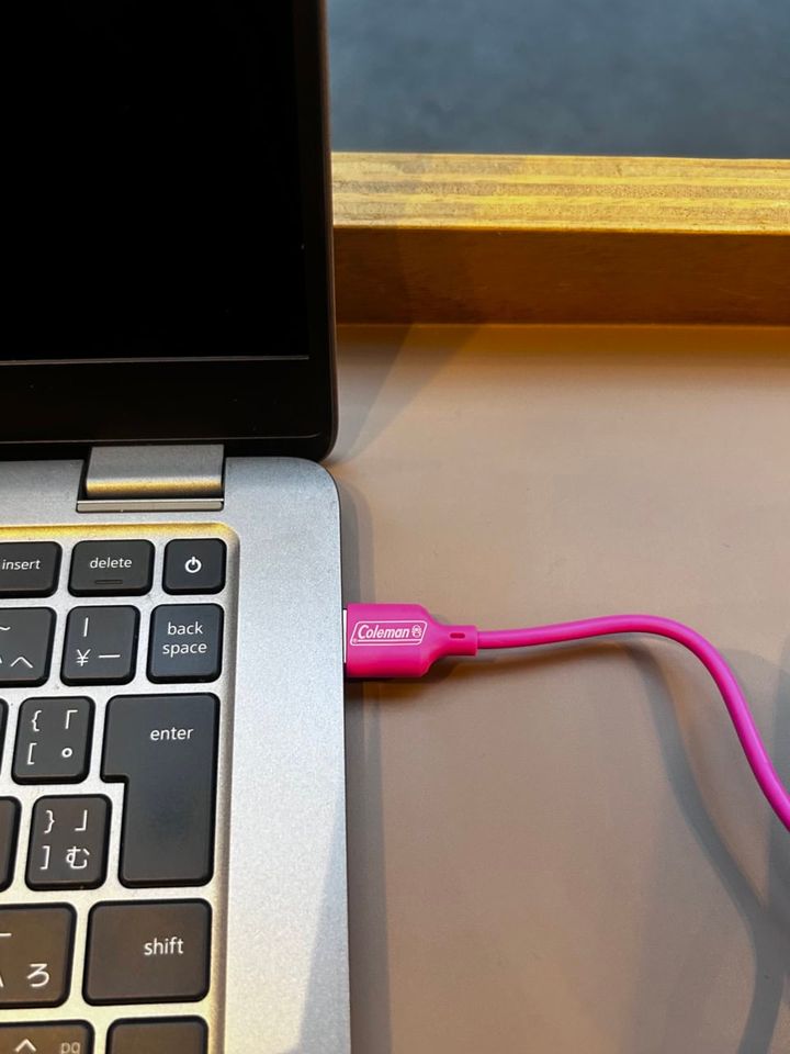 先端にはコールマンのロゴ付きです。ピンクのコードがデスクまわりを華やかにしてくれるので、PC作業もなんだか気分よしです!