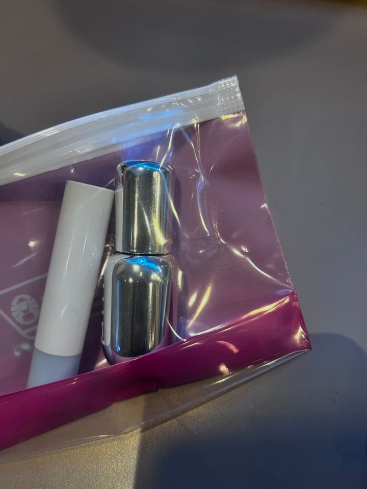 ジッパーバッグはピンクとブルーの2つセットです。薄くてかさばらないので小物の整理に便利。薬やサプリ、絆創膏など細々としたアイテムをまとめるのにオススメです。