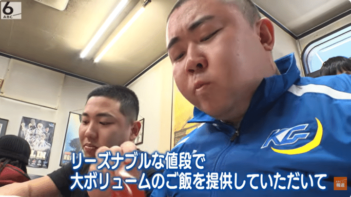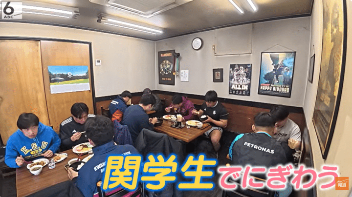 まもなく出てきた「特盛り」は、その量なんと1kg超!「バリうまいっす!」と頬張るのは、甲子園ボウル歴代最多34回の優勝を誇る関学の名門アメフト部「FIGHTERS」の選手たち。「ハングリーウィッチ」の安くてボリュームのある料理が「僕たちの体作りにもいかされています」と笑顔を見せます。