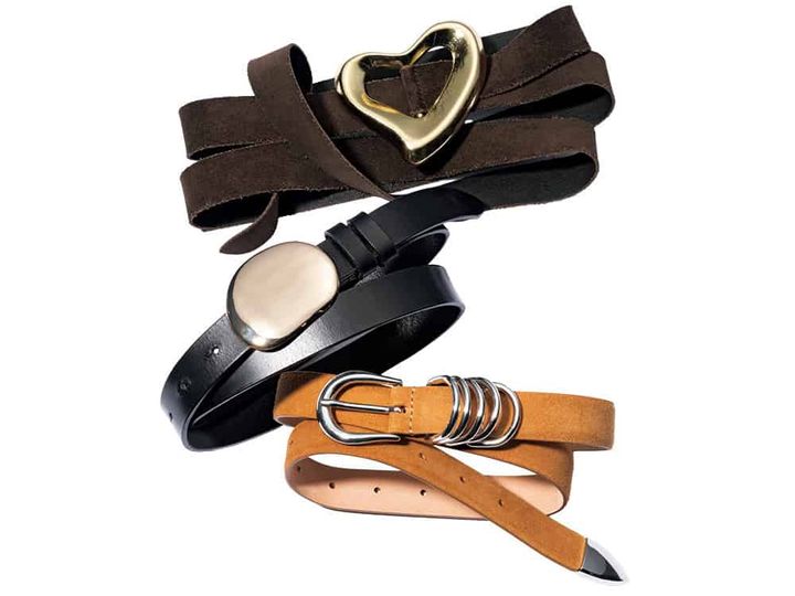 【上】ハートベルト¥25,300(シー/エスストア)【中】シルバーベルト¥16,500(ジャミレイ/エルディスト ショールーム.【下】ベルト(上モデル着用分)