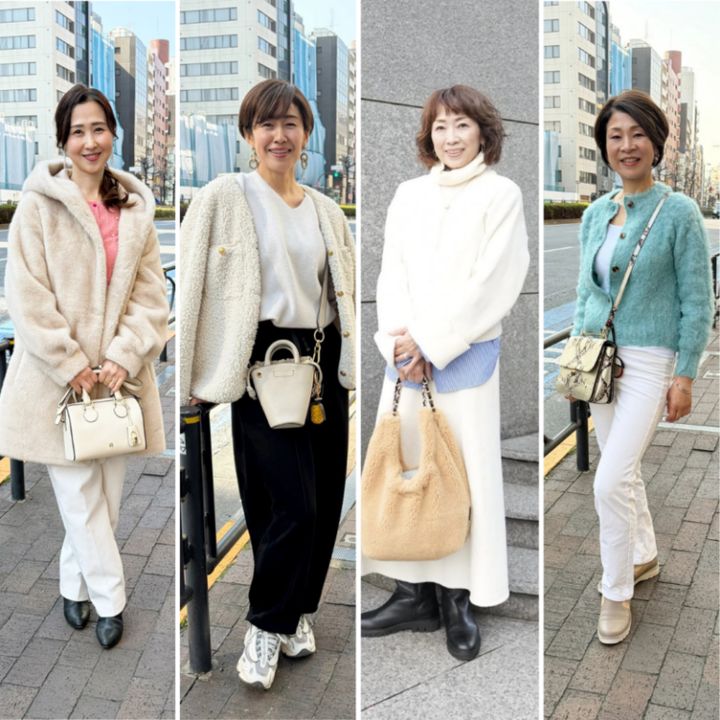 素敵世代の皆さんのおしゃれをチェック! 春が近づく季節にぴったりなクリーンな白やミルクティー色など、軽やかな色使いが印象的な大人のファッションを集めました。