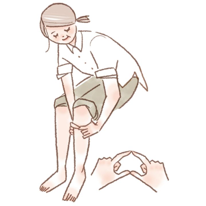 【3】【2】の輪っかでふくらはぎを囲む。 結果