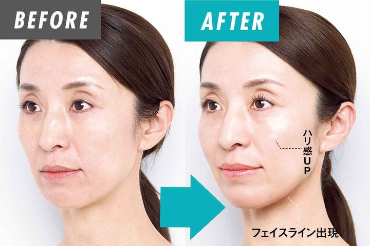 アゴ肉の変化には自分でもびっくり。顔とボディが引き締まっただけでなく、ファンデの色を替えたくなるほどトーンアップしたのは予想外の効果でした。適度な重さがあって圧がかけやすいのもお気に入りポイントです。