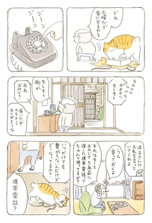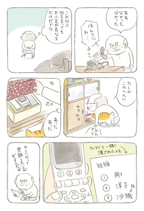 3. 心配だから肌身離さず持っていて! いつも繋がらないじいちゃんの携帯電話/ねことじいちゃん2(9)