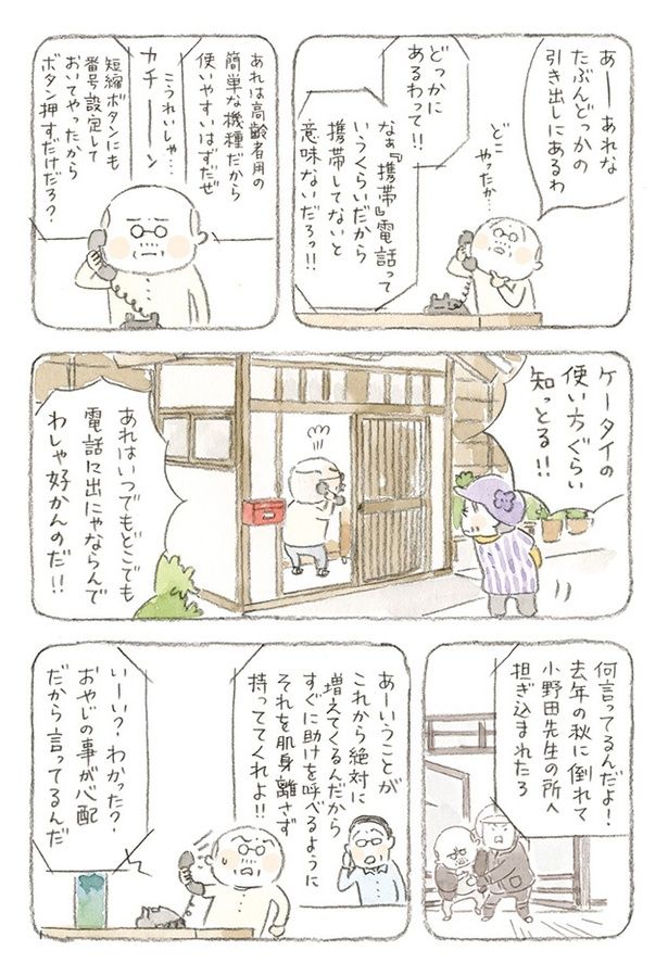 心配だから肌身離さず持っていて! いつも繋がらないじいちゃんの携帯電話/ねことじいちゃん2(9)