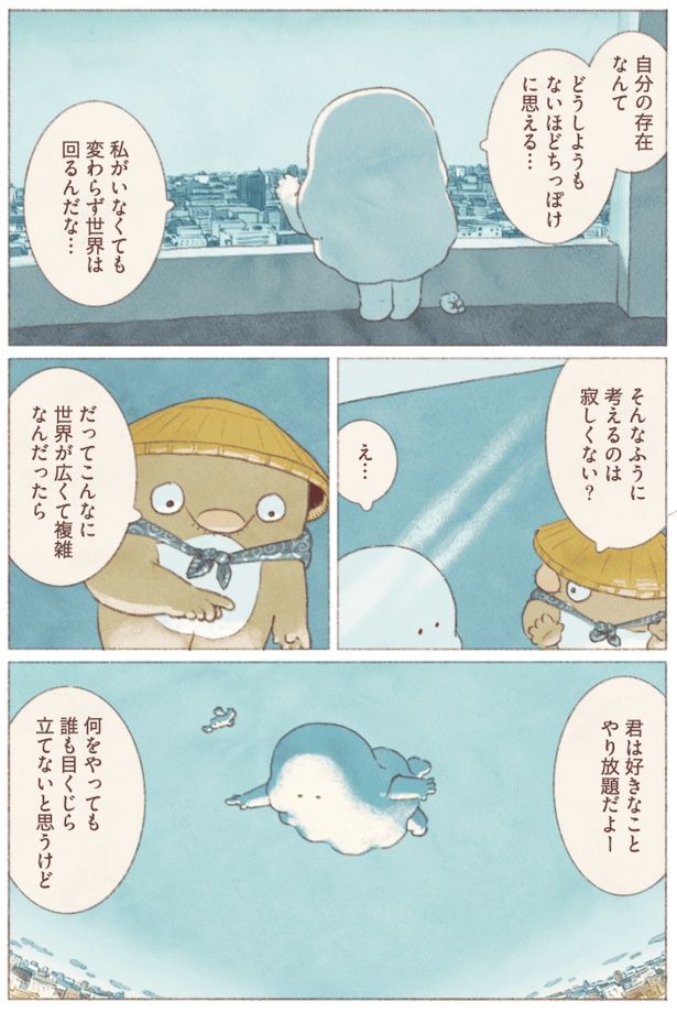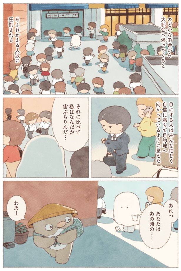 地方から上京し、就活に追われる大学生「私」は、「人生このままでいいのかな?」と悩みを感じ、気づくとおばけの姿になっていた。将来への不安と向き合いながら、「私」は気分転換に小さな「旅」に出る。旅先での出会いやおいしいごはんに心をほぐされながら、少しずつ自分らしい生き方を選んでいく。悩める「おばけ」の姿を描いた、温かくて優しい物語『おばけのおいしいひとり旅』をお届けします。