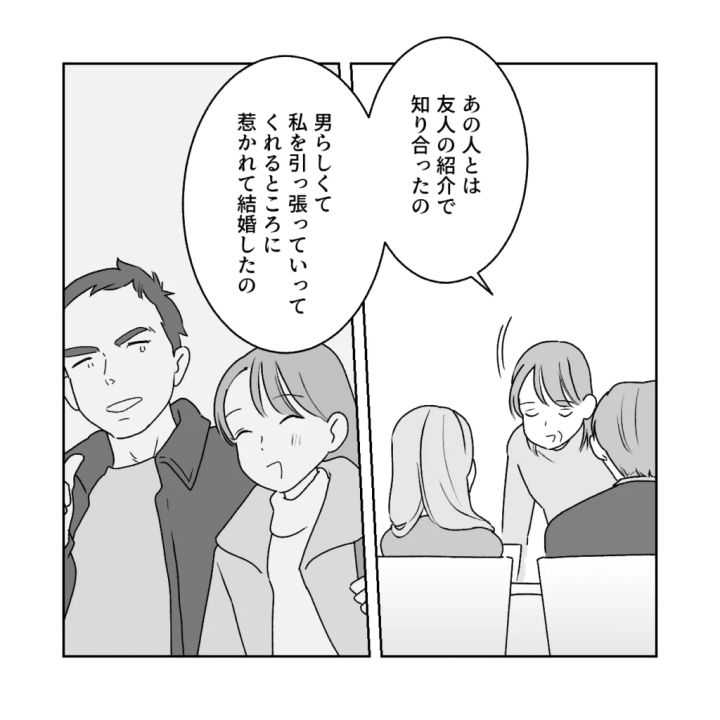 義母は席につくと「あの人とは友人の紹介で知り合ったの。男らしくて私を引っ張っていってくれるところに惹かれて結婚したの」と義父との馴れ初めを話し始めました。