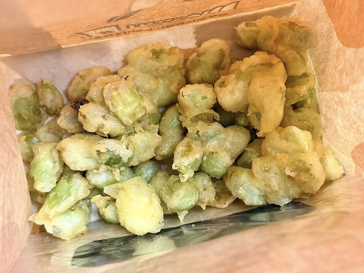 孫悟空も作中で食べていた、「仙豆」をイメージした枝豆の天ぷら。