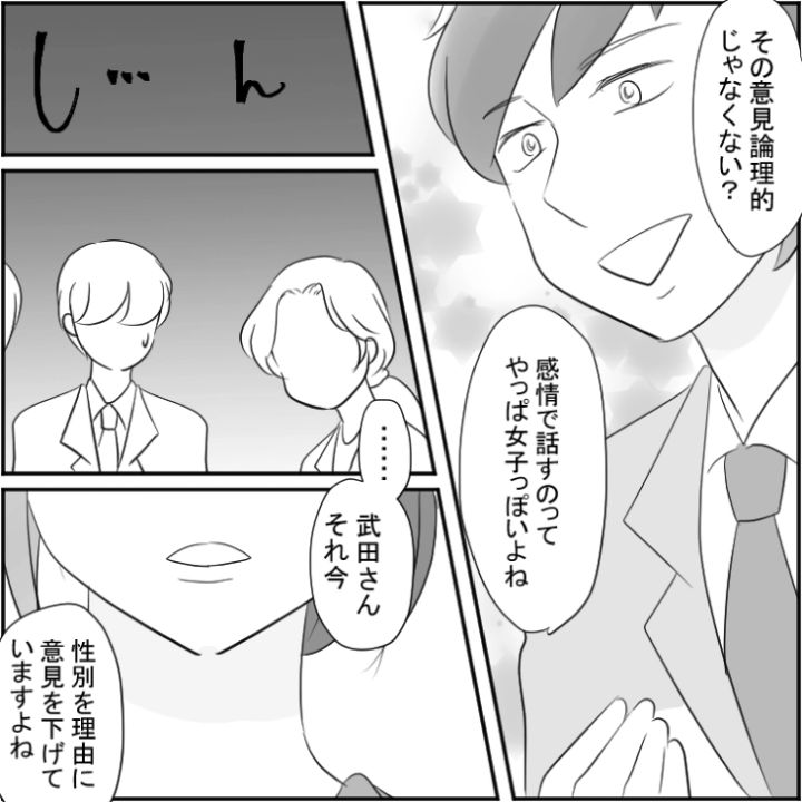 「感情的に話すのってTHE・女って感じ笑」性別を理由に意見や資料を批判する男性社員!本人は冗談のつもりというが調子に乗りすぎた結果、社内的な問題になり・・・