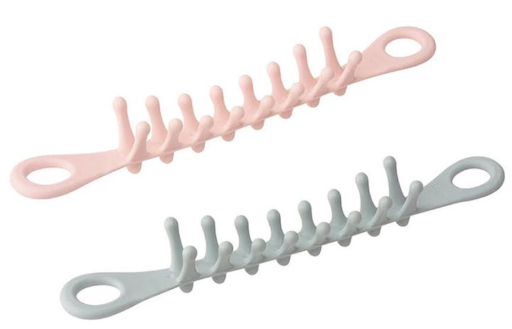 なんか魚の骨みたい…?実はこの形がポイントです。突起を頭に当ててジグザグに動かして「揉む」、髪をとかすように「流す」、ツボを「押す」のすべてができちゃいます。軟らかい素材でできているため頭にフィットしやすく、頭だけでなく首にも使用できるんです。
