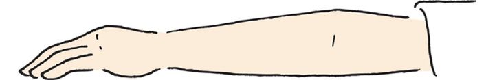 足同様に右手から左手の順に片方ずつ観察していきましょう。指先一本一本から始め、手のひら、手の甲、手首へ移し、腕の外側から内側へとスキャンしていきます。ひじも腕同様に外側から内側へと移動させ、最後は二の腕に意識を向けましょう。