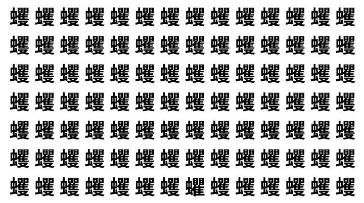 たくさんの「蠼」の中に、よく似た別の漢字が1文字だけ隠れています。