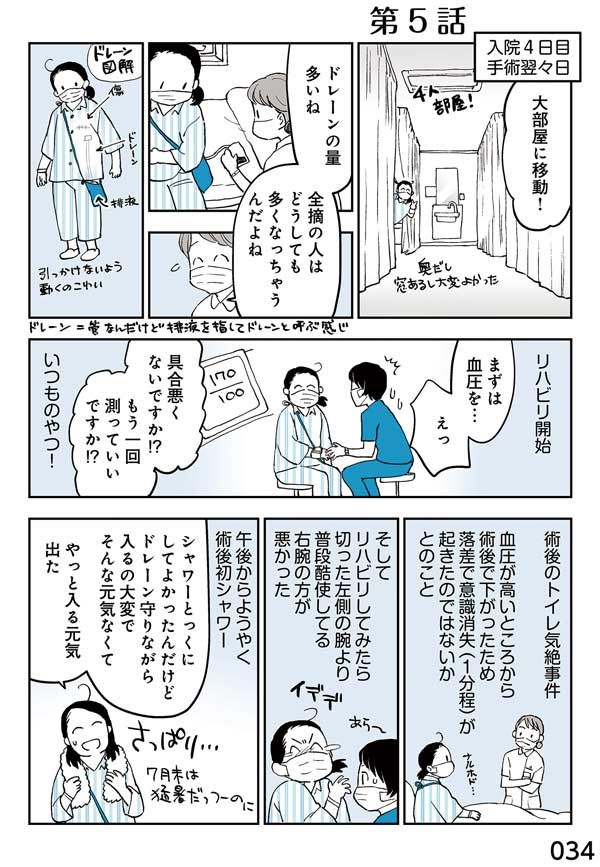50代お一人様漫画家の描く乳がん手術体験コミックエッセイ。術後、大部屋に移って続ったものの、高血圧のためついに内科を受診することに。退院日はいつになるのか?
