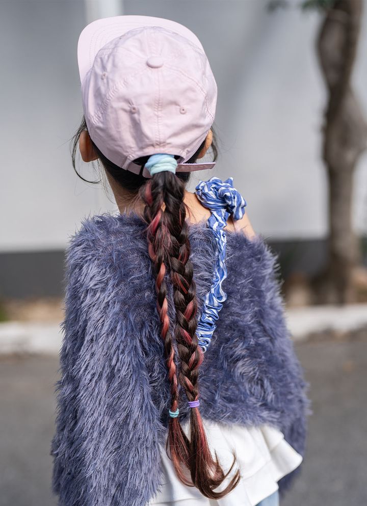 ポイントで入れたヘアカラーがアクセサリー代わりに大活躍♪ 可愛くて崩れにくい三つ編みアレンジは、ぜひ真似してみて。