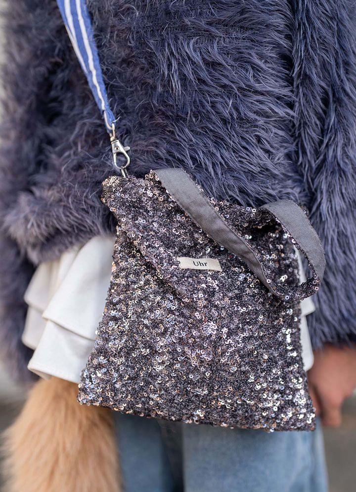 キラキラなスパンコールバッグはキッズのテンションも高まるアイテム。存在感あるストラップで投入するだけでおしゃれ見えが叶う。