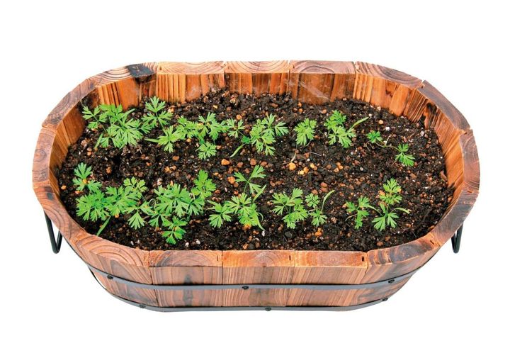 ベランダやテラスで野菜栽培をするときに、プランターや鉢などは必須。ポイントは栽培する野菜に合わせた大きさ・深さの器を選ぶこと。ラディッシュやルッコラなど葉もの野菜を少しだけ栽培するなら、深さ10㎝ほどの浅い器でも構いませんが、ミニトマトなど実のなるものは、深さ25㎝以上の器を用意したいものです。また、材質によって特徴が異なるので、最適なものを見つけて。