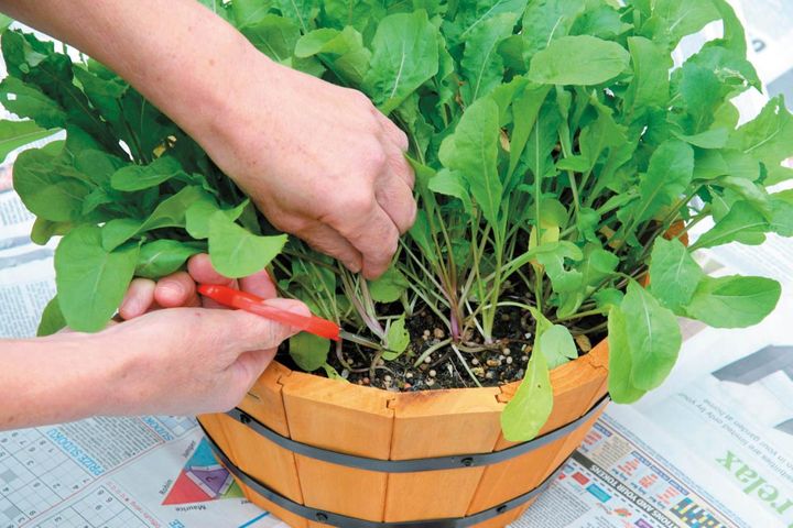 限られた用土だけで育てるプランター栽培では、肥料なくして野菜を育てることは不可能。種をまいたり苗を植えたりする前に、あらかじめ用土に肥料を混ぜておき、野菜の種類や生育状況を見ながら、少量ずつこまめに追肥をします。ただし、市販の培養土にはすでに肥料が配合されている場合が多いので、栽培期間の短い葉もの野菜なら、追肥をしなくても育てられるでしょう。