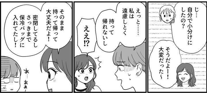 疲れているのにみんなのために一生懸命小分けして、保冷バッグに入れて持ってきたのに……。