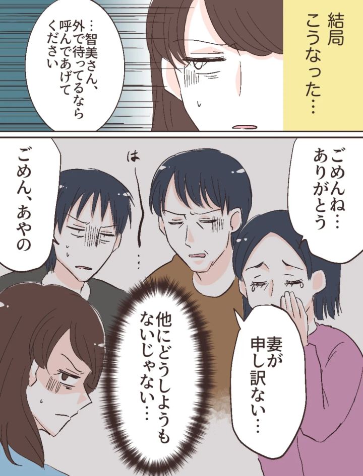 義母から「智美さんも連れてきている」と聞いたとき、本当は絶対呼びたくなかったのですが、この場で帰らせるわけにもいかず、泣く泣く呼ぶしかありませんでした。「ごめんね・・・ありがとう」そう言って涙ぐむ義母とは対照的に、私と修吾、そして義父の3人は、大きなため息をつきました。