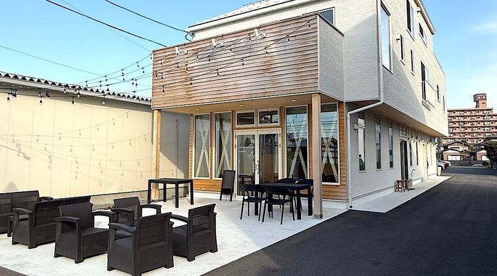 外には、犬連れOKのテラス席もあります♪この奥に駐車場があります。