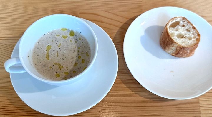 スープとパン・・・この日は、マッシュルームのポタージュ