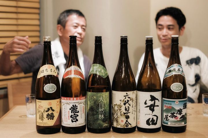 2人にはあらかじめ、それぞれの思い出や転機に繋がった焼酎を3本ずつ選んでもらった。その話を聞きながら、みんなで実際に飲み、つまむ。はい、つまり飲み会です。