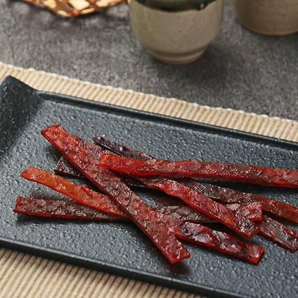イカを甘辛く味付けし、食べやすいスティック状にカットしたおつまみです。