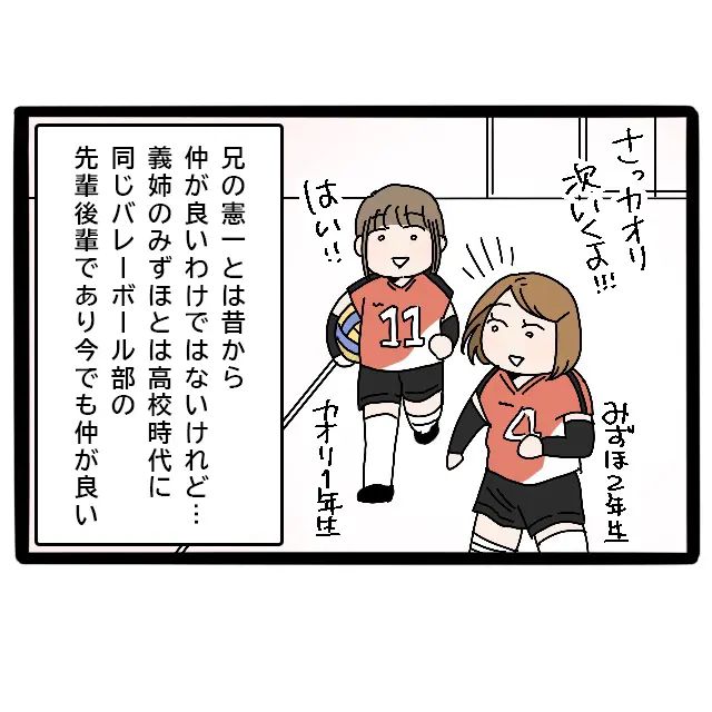 兄とは、特別仲が良いと言うわけではないのですが、兄嫁のみずほさんは、高校時代に同じバレーボール部の1年先輩だったので、学生時代からよく知っています。みずほ先輩はいつも明るくて、新入部員の時からよく声をかけてくれる優しい女性で、今でも仲良くしているのです。