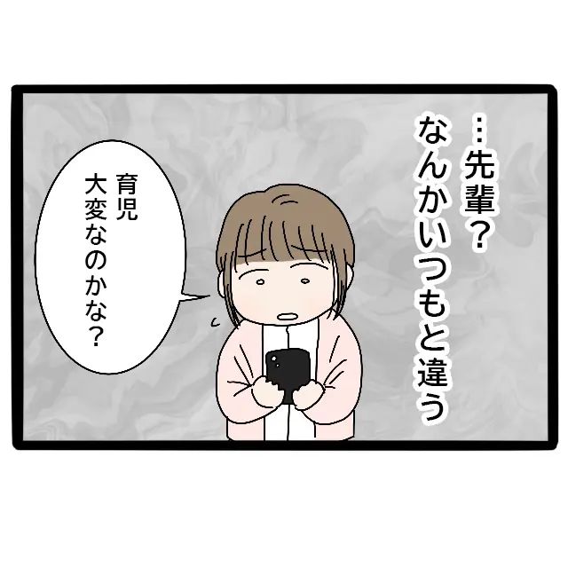 みずほ先輩、なんだかいつもと違うけれど、どうしたのかな。育児が大変なのかな。私は急にみずほ先輩が心配になりました。週末に実家に泊まるから、その時にゆっくり話そうと思いました。