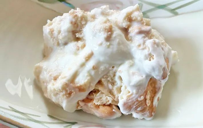翌日、蓋を開けてみるとサブレがヨーグルトの水分をしっかり吸い込み、しっとりとやわらかい質感に変化していました。