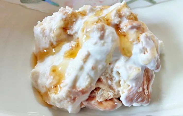 物足りない人は、ハチミツを1杯、もしくはレーズンを入れて混ぜると、一気にデザート感がアップしますよ。