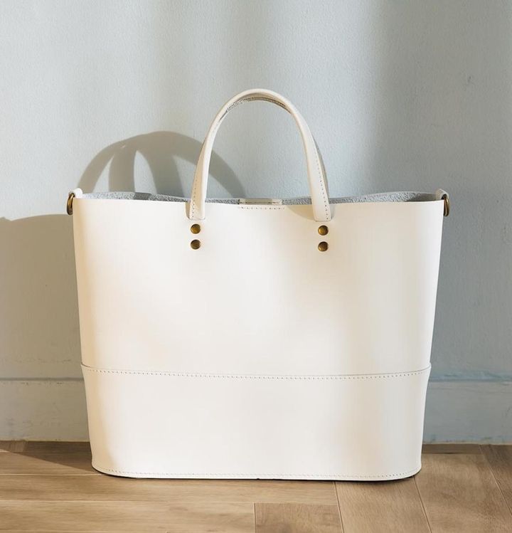 たっぷり収納の白レザートート
