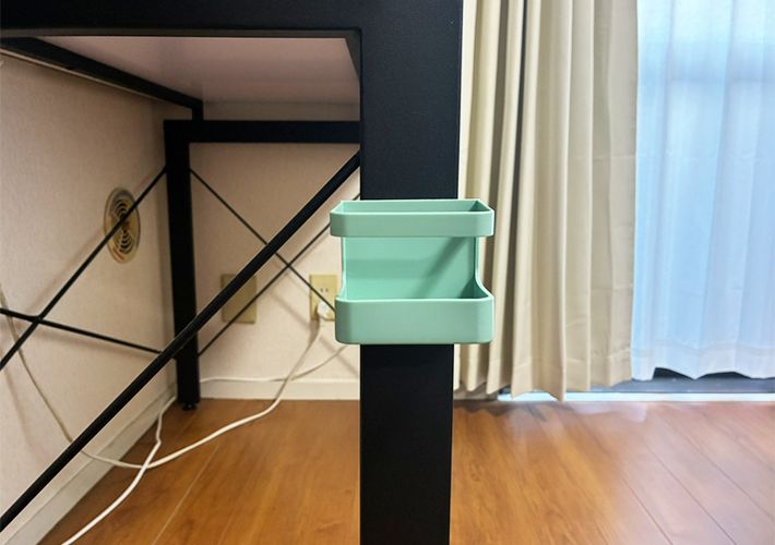 ちょうどデスク横の金属フレームにくっつきそうだったので、設置してみることに。先ほどと同じで、下部ホルダーのみ使用します。