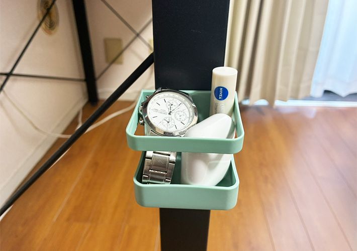 普段よく持ち歩く時計やイヤホン、リップクリームは、帰宅時にテーブルの上に置いたままにしていましたが、ポンと入れられる定位置ができたことで、テーブルの上がいつも以上にすっきり保てそうです!