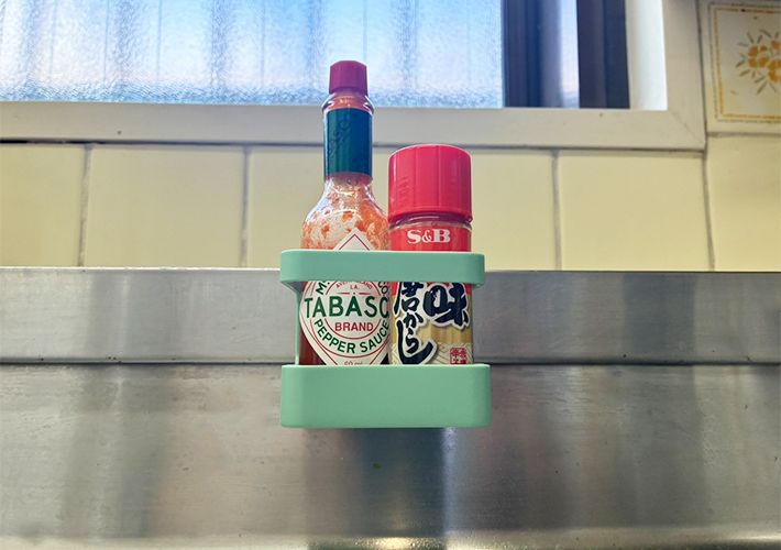 ちょうど棚に入りきらなかった調味料があったので、下部ホルダーに入れてみたところ、すっぽりときれいに収まりました!