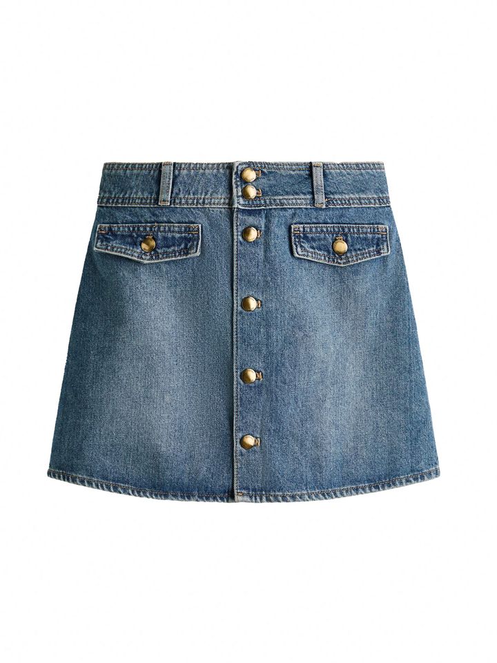 アンダーソンのコレクションは非常にインパクトがあり、その提案は、ファッション市場に広がるデニムミニの気分とも響き合っている。実際、デザイナーズからハイストリートまで、あらゆるシルエットや色、ウォッシュ加工のものが出そろっている。白Tシャツタンクトップ、少しボタンを外したシャツをさりげなくタックインしてみたり、ディオールの世界観に傾倒しているならトリコーンハットをかぶってみたりするのもいい。彼が証明したようにデニムミニスカートの可能性はほぼ無限大だ。それに脚長効果を狙えるのも嬉しいポイント。この春はフルレングスのデニムに代わって取り入れてみては?