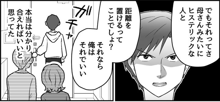 俺はユウイチ、20代の社会人です。俺は大学進学と同時に家を出ました。その理由は、俺に依存してくる重たい母と離れたかったからです。母はたしかに俺のことを可愛がっていたと思うけれど、その気持ちは「愛情」ではなく「執着」に近いと感じていました。もし離れていなかったら、大人になった今でも交友関係や仕事にまで干渉されていただろうなと思います。やがてツムギと出会った俺は、結婚して一緒に新しい人生を歩むことを決め……?