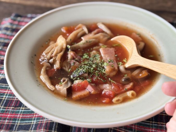 写真のようにスープにひとふりするだけで、セロリの爽やかな香りがふわっと広がって、味に奥行きが生まれます。