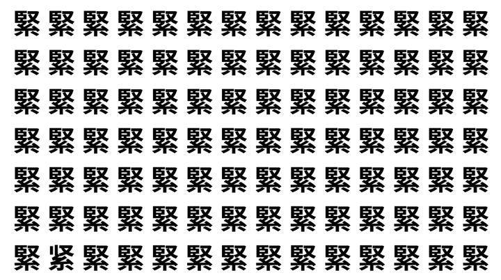 たくさんの「緊」の中に、よく似た別の漢字が1文字だけ隠れています。