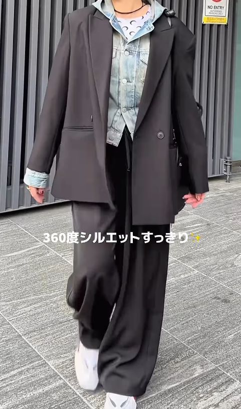 卒業式や入学式など、春のイベントシーズンは服装に悩むことも多いはず。そんな時に重宝するのが、yc__mamさんのようなジャケットを主役にした着こなしです。かっちりした印象のブラックジャケットに、あえてデニムジャケットをインナーとして重ねる技ありのレイヤード。